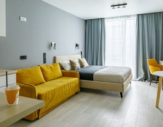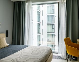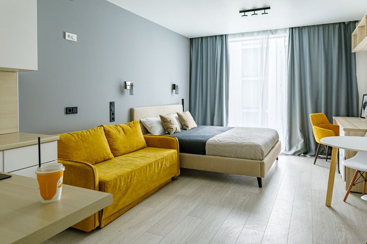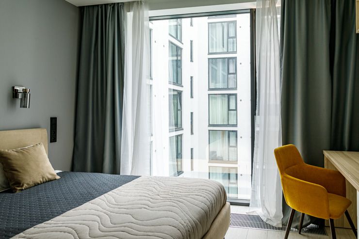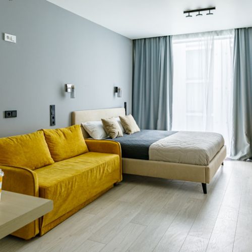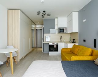 Апартаменты разместились в многоэтажном здании современного жилого комплекса YARD. В распоряжении гостей номер с лаконичным стильным интерьером. Среди удобств – кухонный уголок с электроплитой, необходимой посудой и бытовой техникой, стиральная машина, ЖК-телевизор и безлимитный интернет, в санузле – душевая кабина и набор туалетных принадлежностей.
